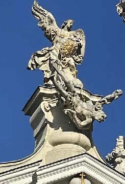 Philipp Jakob Straub, Der Erzengel Michael mit Engelssturz, links und rechts: Die Erzengel Raphael und Gabriel. 1744, Graz