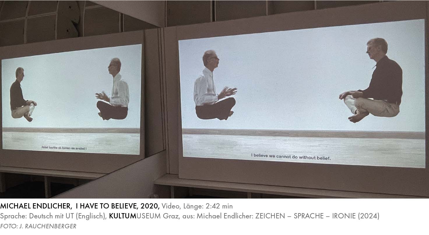 Als heutige Glaubensapostel in Schneidersitz und Schwebehaltung porträtiert sich der Künstler im Video „I have to believe“, das in einem Extra-Zimmer ganz nahe dem „HERZMARY“ und dem „aWomen“ und „aMen“ positioniert ist. Zwei (digital geklonte) Endlichers sagen sich alle nur erdenklichen „Glaubensbekenntnisse“ zu: Varianten, was ein ICH so glauben kann, reichen vom religiösen Bekenntnis, einer blasphemischen Persiflage bis hin zum Sex als dem großen Anderen.