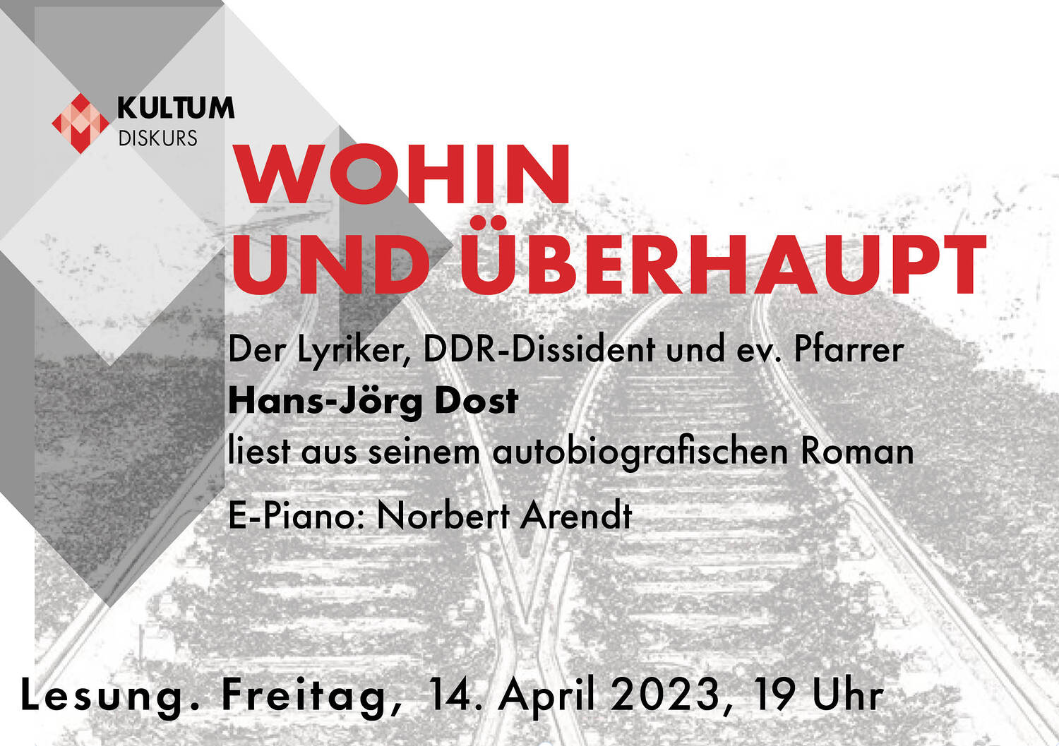 Hans Jörg-Dost erzählt die Geschichte eines Mannes, der in der DDR in Konflikt mit staatlichen und auch kirchlichen Strukturen gerät, Theologie studiert und Hörspiele sowie Gedichte und Prosa schreibt und später u.a. als evangelischer Pfarrer in Murau wirken wird. Es ist seine Geschichte, seine Autobiografie. Details zur Veranstaltung