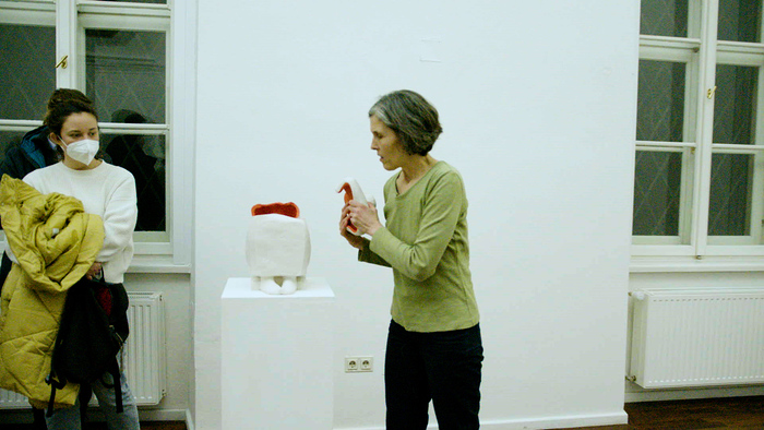 Schließlich ist die jüngste Skulptur aus dem vergangenen Jahr zu sehen: "Mutter mit Tochter": Zwei ineinander verschlungene Körper entstanden aus der Beschäftigung mit den Erzählungen von Frauen aus dem 6. Lebensjahrzehnt, "die mit ihrer alten Mutter nicht mehr zurecht kommen und psychosomatische Symptome entwickeln".