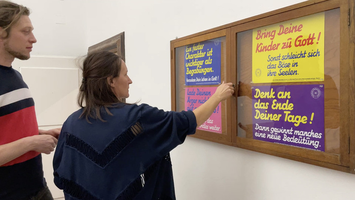 Sehr interessant war das Gespräch mit dem Künstlerpaar zweintopf (Eva Pichler und Gerhard Pichler) am vergangenen Samstag zu den "Spruchplakaten" mit den ganz besonderen Bitten für Mariatrost. Ich freue mich auch sehr, dass die Arbeiten Teil unserer Sammlung werden... Sie bringen jedenfalls die Propaganda fidei ganz besonders auf den Punkt - mit dem Anspruch auf den direkten Draht nach oben...