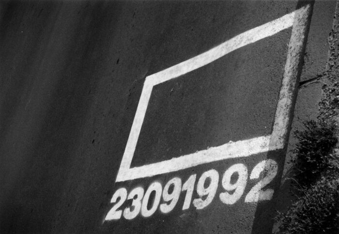 Auslöschung: Zlatko Kopljars Vater wurde am 23.9.1992 im Krieg durch eine Bombe getötet: K6 aus dem Jahr 2000 erinnert an die Stelle. Zwei Wochen später war auch diese Markierung durch die darüberfahrenden Autos ausgelöscht.