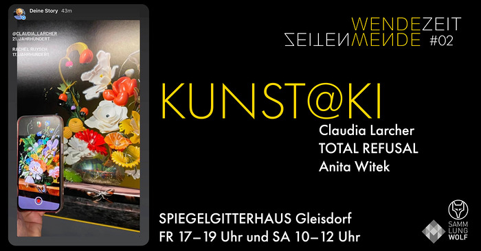 KUNST@KI: die neue Ausstellung im Spiegelgitterhaus Gleisdorf wurde am vergangenen Freitag eröffnet. Mit Beiträgen von Claudia Larcher, Total Refusal und Anita Witek. Bis 5. Jänner ist die Schau zu sehen. Freitags von 17 bis 19 Uhr und samstags von 10-12 Uhr ist sie geöffnet, darüberhinaus gibt es Direktanmeldungen über die Sammlung Wolf.