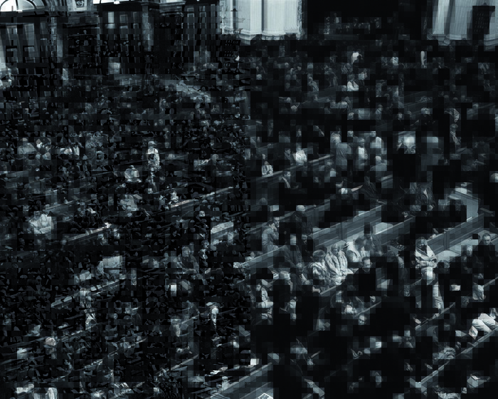 LIDWIEN VAN DE VEN, (geb. in Hulst/NL, lebt in Rotterdam und Berlin) Berliner Dom, 2001 2.00x2.50 meter (in 2 Teilen) Silvergelatin print on baryte paper, aluminium frame KULTUMUSEUM Graz, aus: IRREALIGIOUS! Parallelwelt Religion in der Kunst (2012)