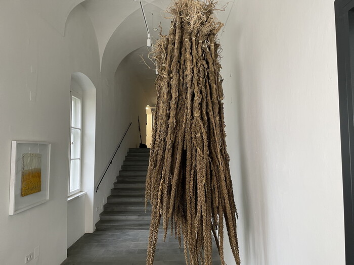 Wilhelm Scheruebl OIKOS – das Gewicht der Welt, 2023 Sonnenblumenstängel, (Installation aus Salzburg, 2022)
