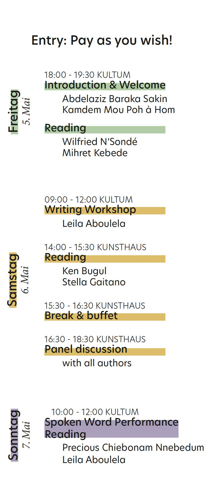 Im Namen von Kamdem Mou Poh à Hom, Leonie Melk, Simon Dippold (Gesamtleitung und Konzept) und KULTUM-Literatur-Kuratorin Barbara Rauchenberger, aller Mitveranstalter und Kooperationspartner lade ich Sie zu dieser besonderen Veranstaltung am kommenden Wochenende herzlich ein!