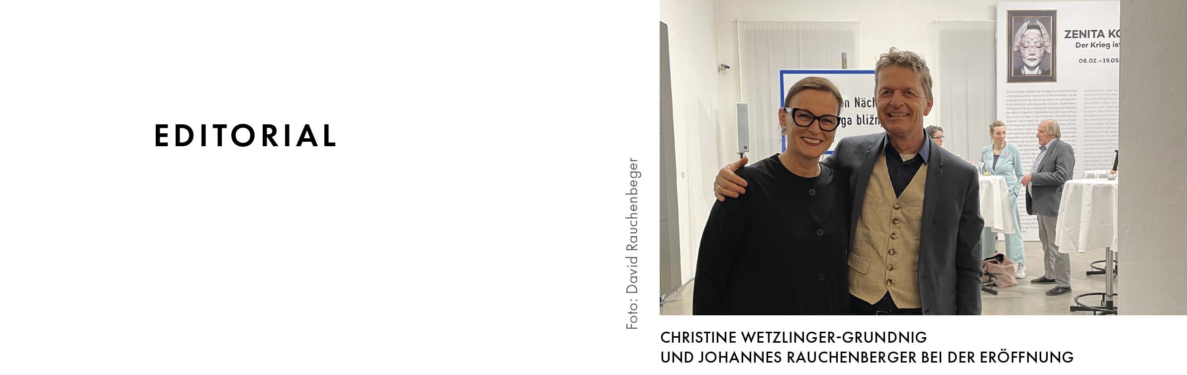 „DER KRIEG IST AUS!“ schallt Zenita Komads Appell vom Burghof in Klagenfurt in den Äther. Geschrieben mit „Buchstaben“ aus frisch gefällten Baumstämmen, die als solche auch eine brutale Note aufweisen. Im Hof vor dem barocken Minoritensaal in Graz – einem von der Fürstenfamilie der Eggenberger in der Barockzeit gestifteten Sommerrefektorium für die Franziskaner-Minoritenbrüder – lautet selbiges kurz vor Ostern: „NIE WIEDER KRIEG!“. Verzweifelt und sehnsüchtig nach Frieden ringend, im gleichzeitigen Bewusstsein der Aussichtslosigkeit, formuliert die Künstlerin umso vehementer ihre Anliegen, für die sie uns alle als Mitstreiter*innen gewinnen möchte. Dafür ist es höchste Zeit. Wir hoffen, ihre Bilder, Visionen und Appelle finden mit den beiden Ausstellungen ihr notwendiges, ebenso entschiedenes Publikum.