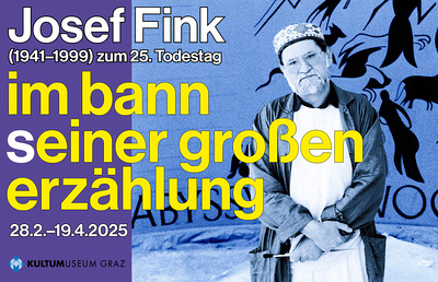 Nach der Übernahme einer umfangreichen Schenkung seiner Erbinnen (Dr. Maria Schultze, Dr. Hildegard Keil, Mag. Renate Koller, DI Elisabeth Koller) an das KULTUM an seinem 25. Todestag wird das Werk Josef Finks noch einmal einer gründlichen Relecture unterzogen und vom 28. Februar bis 17. April 2025 in einer umfangreichen Schau der Öffentlichkeit vorgestellt. Auch weitere Leihgeber stellen Werke zur Verfügung, u.a. die Erbin der Sammlung Karl Pauritsch (die das Frühwerk von Fink mit fast 1000 Werken birgt und das in seinen Einzelblättern auch erworben werden kann.)