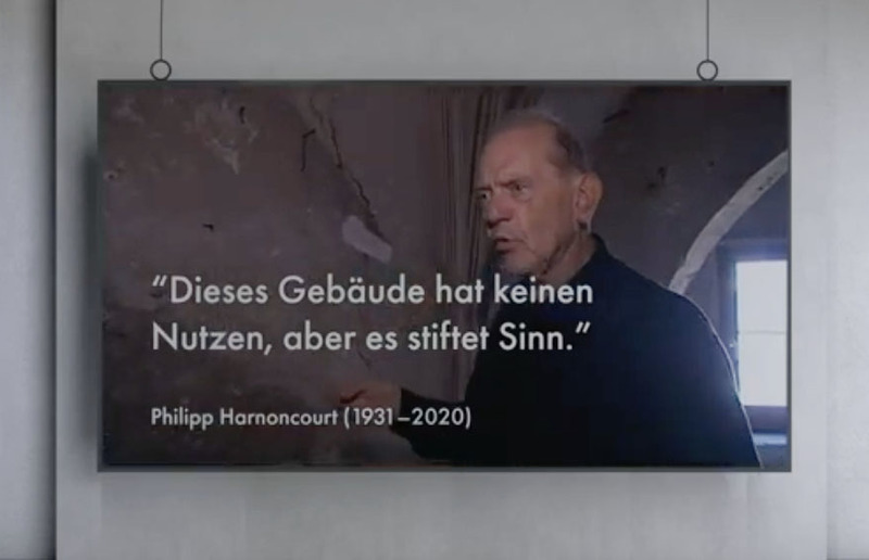 Harnoncourt hat fast 10 Jahre lang mit unglaublicher Akribie Menschen und Mächte verwickelt, dass dieses vollkommene heruntergekommene Gebäude wiederhergestellt wurde. Am Tag nach seinem Begräbnis wurde es am Dreifaltigkeitssonntag des 7. Juni 2020 zu den Improvisationsklängen der Melodie „Locus iste a Deo factus est“ (A. Bruckner) des Posaunisten Bertl Mütter eingeweiht.