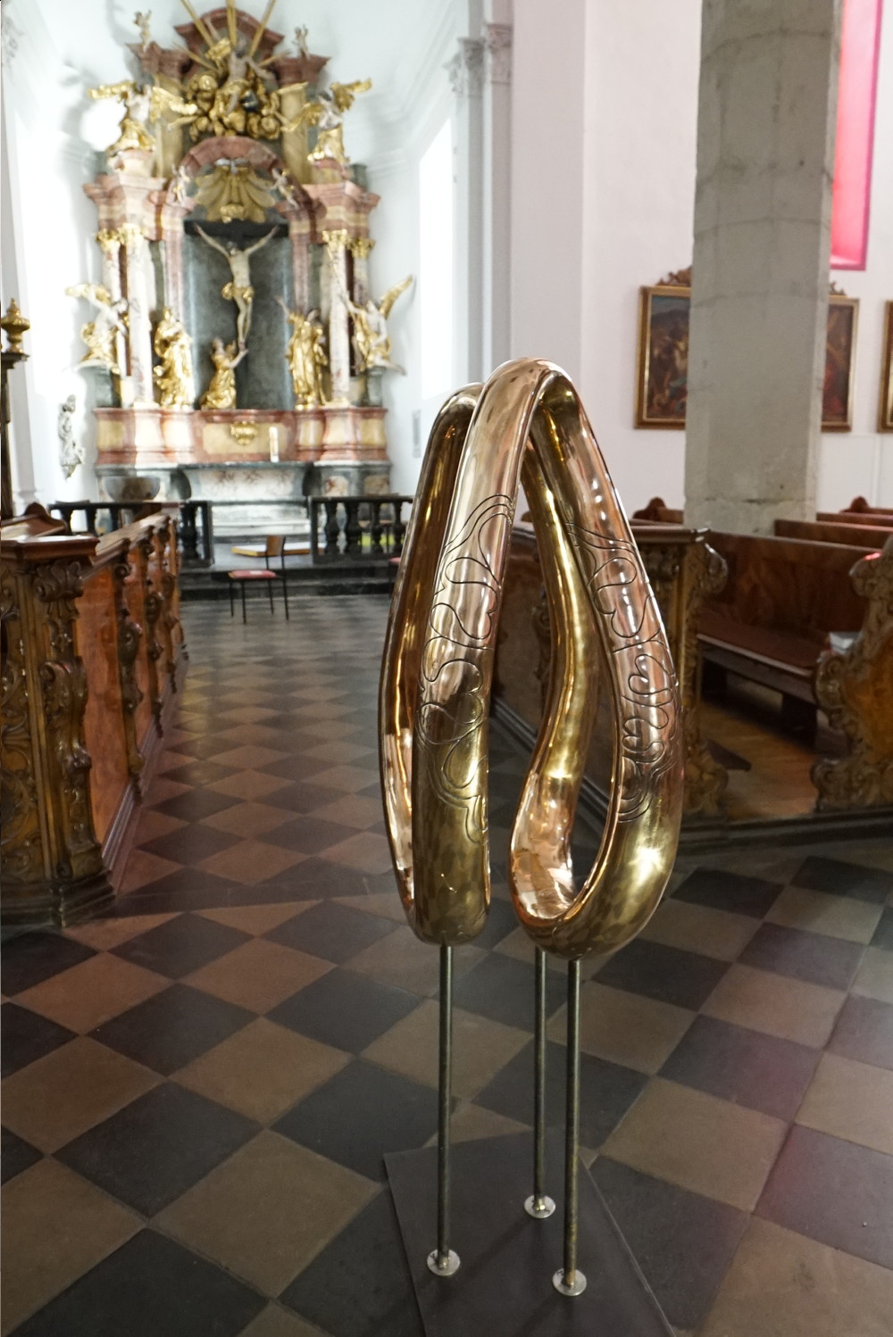 Eine fünf Meter große Holzskulptur in Form einer Lemniskate, die in der St. Andrä-Kirche als Bronzeskulptur zu sehen ist, bildet das die gesamte Tour begleitendes und verbindendes Element. Das "Corona-Denkmal der Hoffnung" ist eine in sich geschlossene Kurvenform, die das Auf und Ab, die Höhen und Tiefen, den transformativen und zyklischen Prozess des Lebens symbolisiert. In unterschiedlichen Größen und Materialien hat Weissenberger Lemniskaten geschaffen, von der Ur-Lemniskate aus Bronze im Haus der Philanthropie Wien bis zum "Corona-Denkmal der Hoffnung", eine über fünf Meter große, Holzskulptur aus toten Kiefern, die dem Klimawandel zum Opfer fielen. Diese dreidimensional-herzförmige Lemniskate symbolisiert den ewigen Kreislauf der Natur – und damit auch die tiefe Verbundenheit von uns Menschen untereinander und mit der uns umgebenden Welt. Das Corona-Denkmal erinnert daran, die der Pandemie immanente Chance der Transformation zu erkennen und so brennende Themen wie Artenschutz, Klimawandel, soziale Gerechtigkeit, Integration, Gemeinwohl und faire Geldordnung aufzunehmen und neu zu verhandeln.