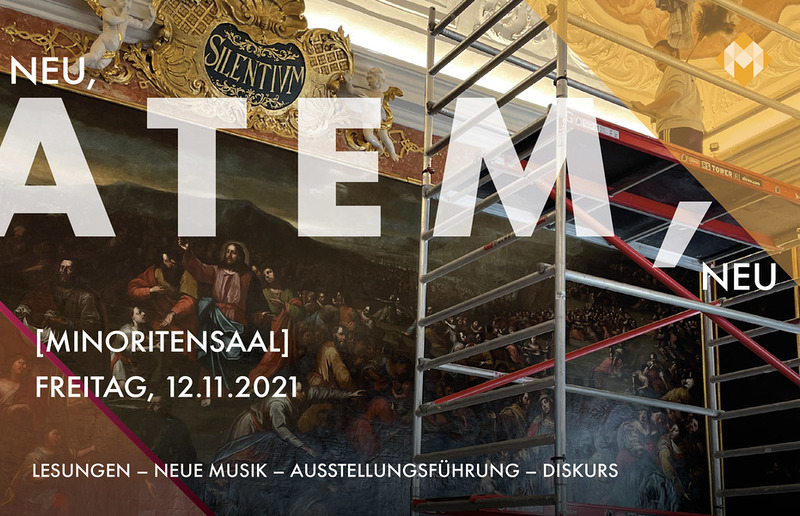 Wovon sprechen wir, wenn wir von Atem reden? Die Literatur bezweifelt das Sang- und Klanglose, zumindest bezweifelte sie es, seit sie begann. Mit dem ihr eigenen Atem, der länger ist, ersetzt sie das Sang- und Klanglose durch Sprache, unterwandert das Sprachlose mit ihren Atemzügen, widerspricht mit den Luftgeschäften der Poesie den Verstockungen. Wir haben Felicitas HOPPE,Christian LEHNERT, Margret KREIDL und Arnold STADLER eingeladen, zu ATEM neue Texte zu schreiben: Diese werden im neu renovierten Minoritensaal erstmals gelesen. Die Mezzosopranistin Klaudia TANDL und das ENSEMBLE AIRBORNE EXTENDED bringen erneut Vertonungen von Margret Kreidls Text „EINLEUCHTEND WEISS“ der Komponist*innen Sanziana Dobrovicescu, Clemens Nachtmann und Antonis Rouvelas zu Gehör.