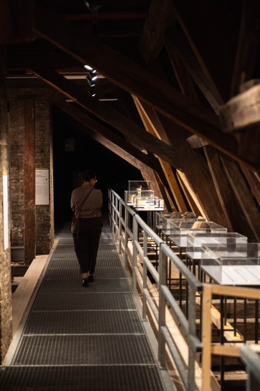 Maaria Wirkkala: Beyond this Point, 2020, Glasleiter, Stahl, Tennenrot-Sand, Ausstellungsansicht: GOTT HAT KEIN MUSEUM. Aspekte von Religion in Kunst der Gegenwart (2025) Foto: A. Babahmetovic