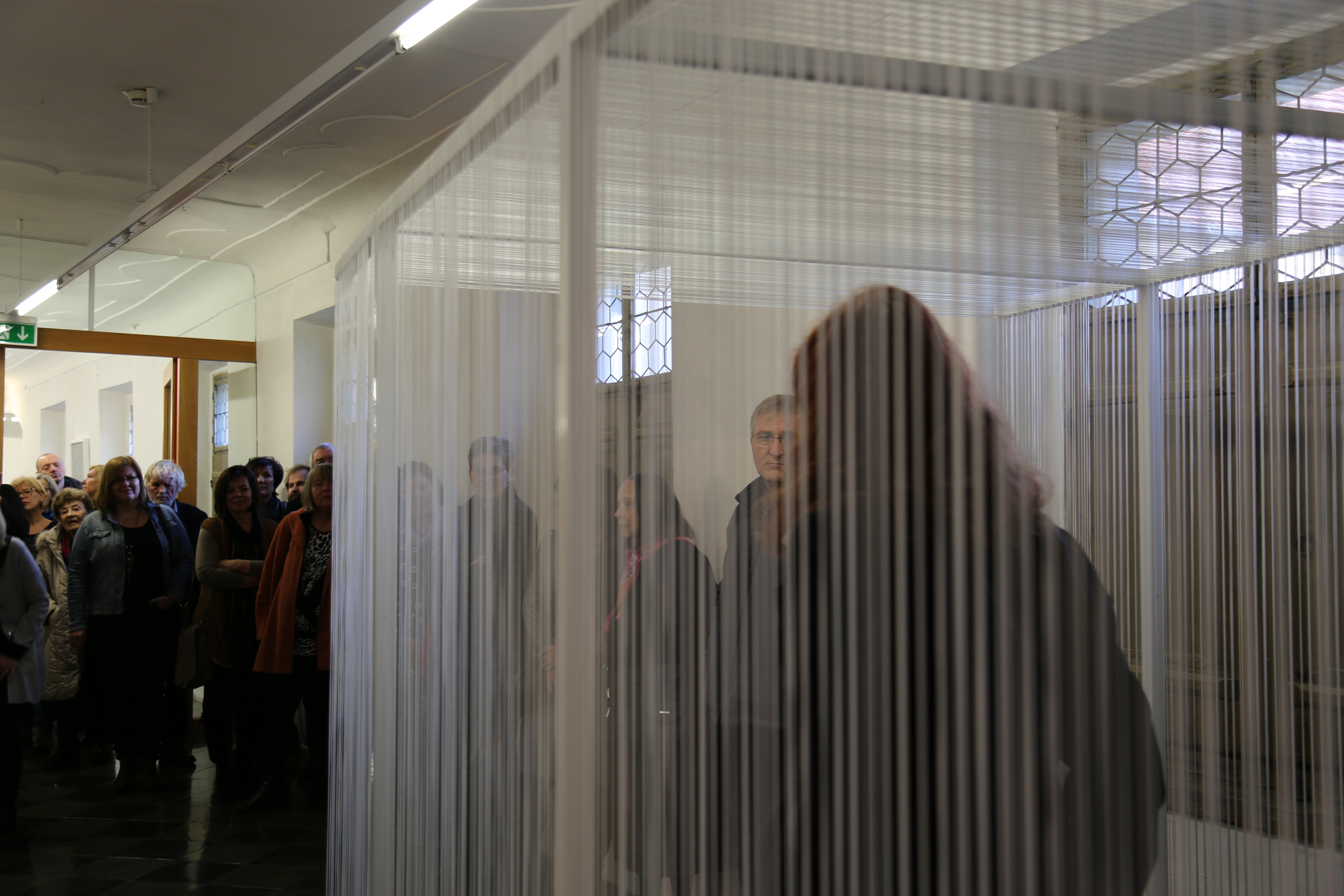 Begonnen hat Renate Krammer auf einem Seminar vor rund 20 Jahren mit dem Abzeichnen von Holzstapeln: Nicht nur die Methode der Serialität war damit bei ihr geboren, sondern auch die Entscheidung, mit dem „immer Gleichen“ Künstlerin zu werden. Und zu bleiben. Renate Krammer schuf in ihrem Atelier in Kumberg in den letzten zwei Jahrzehnten ein ganz außerordentliches Oeuvre, das in dieser Einzelausstellung im KULTUM nun auch endlich einmal auch sehr umfassend und in dieser Breite erstmals gezeigt wird, wenngleich die gezeigten Werke in Wirklichkeit nur ein ganz kleiner Ausschnitt sind. Sie hat zurecht eine besondere Aufmerksamkeit durch ihre Teilnahme an der 15. Architekturbiennale in Venedig im Vorjahr erhalten, was sie nicht durch das Vitamin B von Galeristen, Kuratoren (und schon gar nicht: durch das Weichenlegen von Kulturpolitikern) erreicht hat, sondern schlicht dadurch, dass sie ein Jahr zuvor einen Folder am Ausstellungsort hinterlassen hat und so kontaktiert wurde. Was sie dort als Interaktion mit dem Raum begonnen hat, setzt sie in diesem für die Ausstellung neu entstehenden, begehbaren „Linienraum“ eindrucksvoll fort: Man kann Bilder nicht nur sehen, Zwischenräume wahrnehmen und Vibrationen erspüren, man kann die „gestrichten“ Wände auch sinnlich betreten. In der „Entstehung eine Aktionskunst“ (W. Mracek), ist Renate Krammers Kunst im Ergebnis Meditation. „Raum“ ist dabei freilich nicht bloß eine begehbare Kiste oder ein begehbarer Tunnel, „Raum“ ist ein vibrierendes Möglichkeitsfeld, eine kulturelle Größe. Raum ist ein Gewebe von Beziehungen von Dingen, und Menschen in der sie umgebenden Architektur. Wie und wo verdichtet sich dabei die Kommunikation? Wo kann man dabei Anteil nehmen, wo an diesen Verdichtungen und Verwebungen weiterarbeiten?
