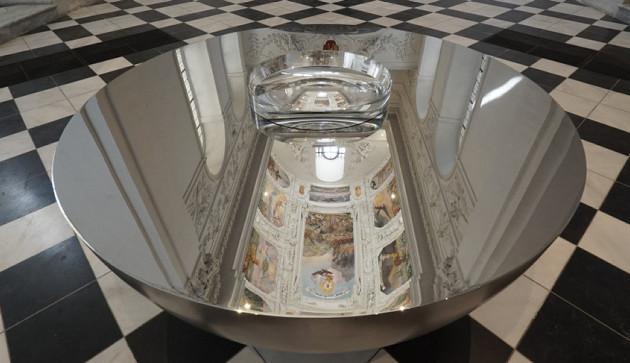[16]John Pawson, Perspectives, 2011, Metall, optische Kristalllinse, temporäre Installation in der Katharinenkirche, Graz