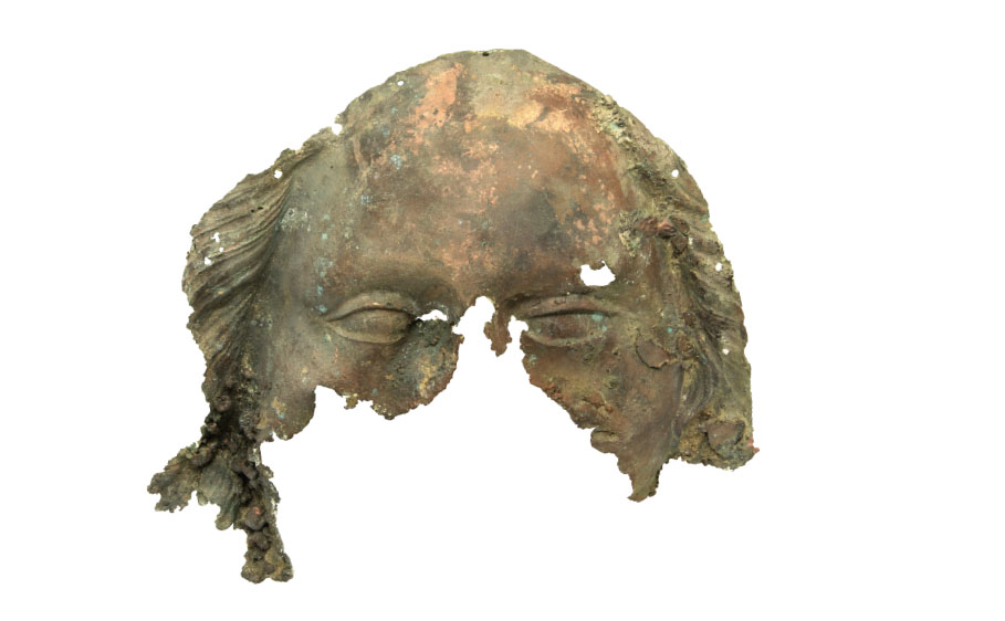 Arnold Schandernell: Fragment des Gesichtes der Marienstatue am Eisernen Tor in Graz, Augsburg 1670, Kupfer, ehem. vergoldet. Graz, Diözesanmuseum, Inv.-Nr. 6830.1390