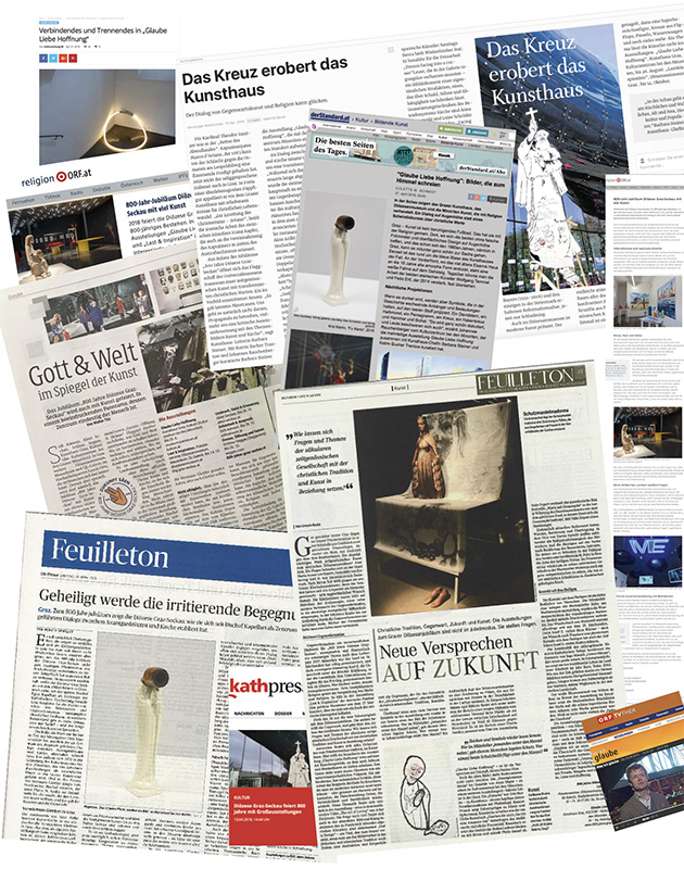 Adel Abdessemed, Azra Akšamija, Iris Andraschek, Maja Bajević, Anna Baranowski und Luise Schröder, Maja Bekan, Monica Bonvicini, Louise Bourgeois, Guillaume Bruère, Günter Brus, Berlinde De Bruyckere, Willem De Rooij, Marlene Dumas, Manfred Erjautz, VALIE EXPORT, Harun Farocki, Linda Fregni Nagler, Hilde Fuchs, Dan Graham, Maria Hahnenkamp, Fritz Hartlauer, Anna Jermolaewa, Birgit Jürgenssen, Franz Kapfer, Zlatko Kopljar, Maria Kramer, Kris Martin, Anna Meyer, Inge Morath, Muntean/Rosenblum, Alois Neuhold, Hermann Nitsch, Adrian Paci, Hannes Priesch, Karol Radziszewski, Werner Reiterer, Ulrike Rosenbach, Anri Sala, Christoph Schmidberger, Santiago Sierra, Slavs and Tatars, TEER (Wolfgang Temmel, Fedo Ertl), Norbert Trummer, Luc Tuymans, Danh Vō, Franz West, Markus Wilfling, Manfred Willmann, Artur Żmijewski, sowie Werke bekannter und anonymer Meister aus der Alten Galerie, dem Volkskundemuseum des Universalmuseums Joanneum und dem Diözesanmuseum Graz.