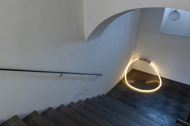 JR: Scheinheilig – da muss einem geradezu der „Heiligenschein“ von Werner Reiterer einfallen. Er markiert nicht von ungefähr den Anfang der Ausstellung bei den Minoriten. Buchstäblich hingeworfen, viel zu groß – wer könnte sich diesen wohl aufsetzen? Ist es vielleicht doch die Institution? Gerade die gebaute Architektur des so schönen und von uns für zeitgenössische Kunstformen seit über 40 Jahren genutzten Minoritensaals ist doch ein blanker Verrat an der franziskanischen Idee der Armut, auch wenn das Geschlecht der Eggenberger am Ende des 17. Jahrhunderts dies alles bezahlt hatte ... Kirche und Geld, Macht und Ohnmacht, das sind Abgründe, die sich nicht so schnell auflösen lassen. Schröder/Baranowski nehmen die Verstörung in diese Ausstellung hinein, wenn eine eigentlich gegenreformatorische Strategie – eine zur höchsten Christusstatue der Welt avancierte Repräsentation – plötzlich in das frühe 21. Jahrhundert hereinbricht. Dieses Phänomen ist nicht von religionspolitischen Strategien, die wir lange überwunden glaubten, zu trennen. Wer schützt die Kirche in Ungarn? Viktor Orbán. Wer lässt im Jahr 2018 Kreuze in den Amtsräumen wieder aufhängen? Der (evangelische) bayrische Ministerpräsident. Es ist also die Politik, die das religiöse Zeichen für sich zu nutzen weiß und wieder in die Gesellschaft hineinträgt. Umgekehrt hat das laizistische Modell Frankreichs, das wir in dieser Frage auch bei uns stillschweigend zu übernehmen scheinen, ebenfalls nicht zu einer friedlicheren Gesellschaft geführt.