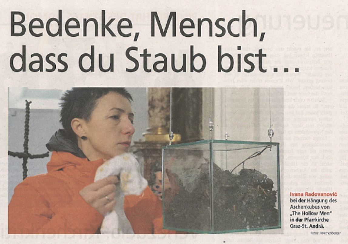 Seit Februar hat Radovanovic ein Stipendium in New York. Anfang Jänner war sie in Graz und bereitete die Intervention für den Aschermittwoch in Graz-St. Andrä vor, indem sie die Sätze von T. S. Eliot als weitere permanente Installation auf die Kirchenwand schrieb.