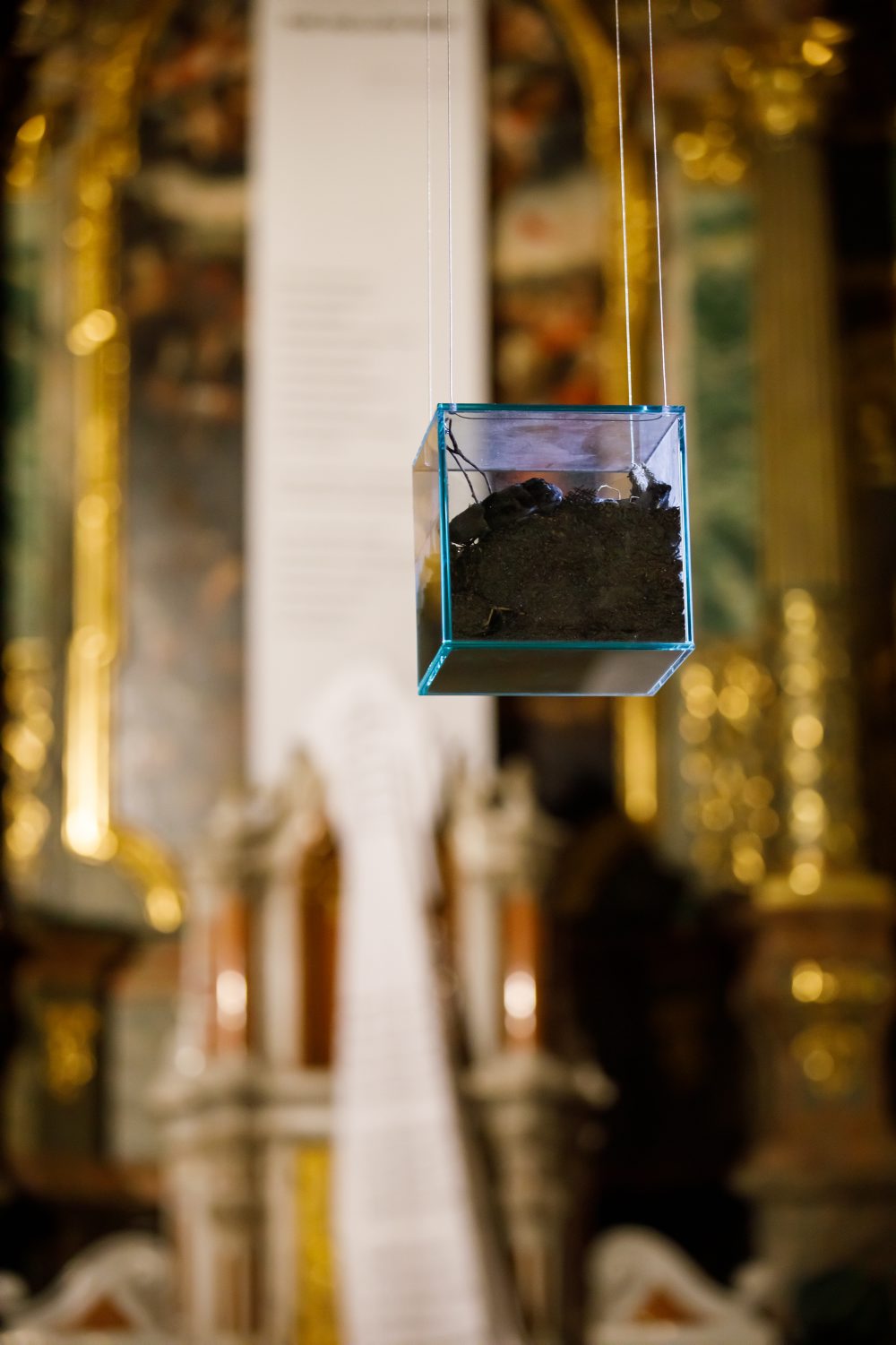 Ein Künstlerbuch und sieben Monitore dokumentieren den Prozess dieser Skulpturen von deren Entstehung bis zu ihrem Ende. Daneben stehen an der Kirchenwand in großer Höhe einige Verse des Gedichts „The Hollow Men“ von T.S. Eliot, die in der Nacht fluoriszierend leuchten: