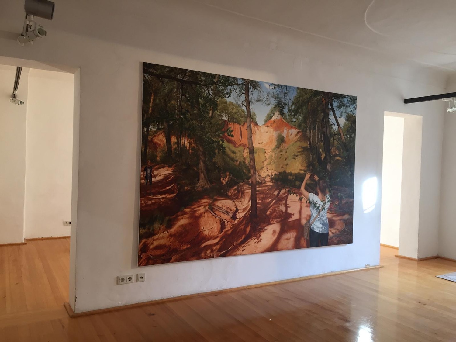 Eine fotografische Vorlage, „die möglichst unkünstlerisch und möglichst schön“ ist, dient als Ausgangspunkt der großformatigen Gemälde, die „keine Kunst“ sind. Marsteurer bemisst den Preis nach den Arbeitsstunden von Malern und Anstreichern und führt genau Protokoll. Foto: J. Rauchenberger