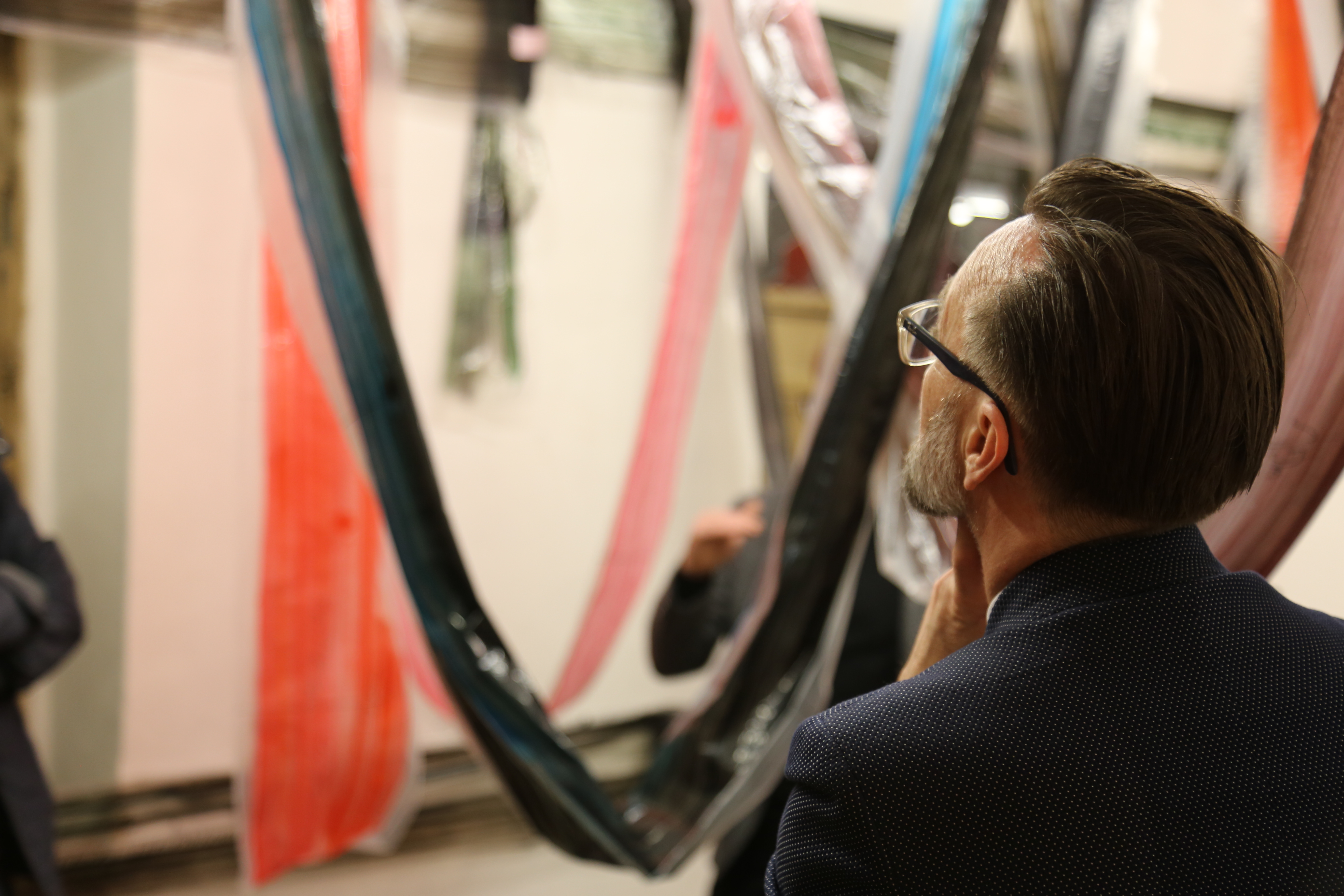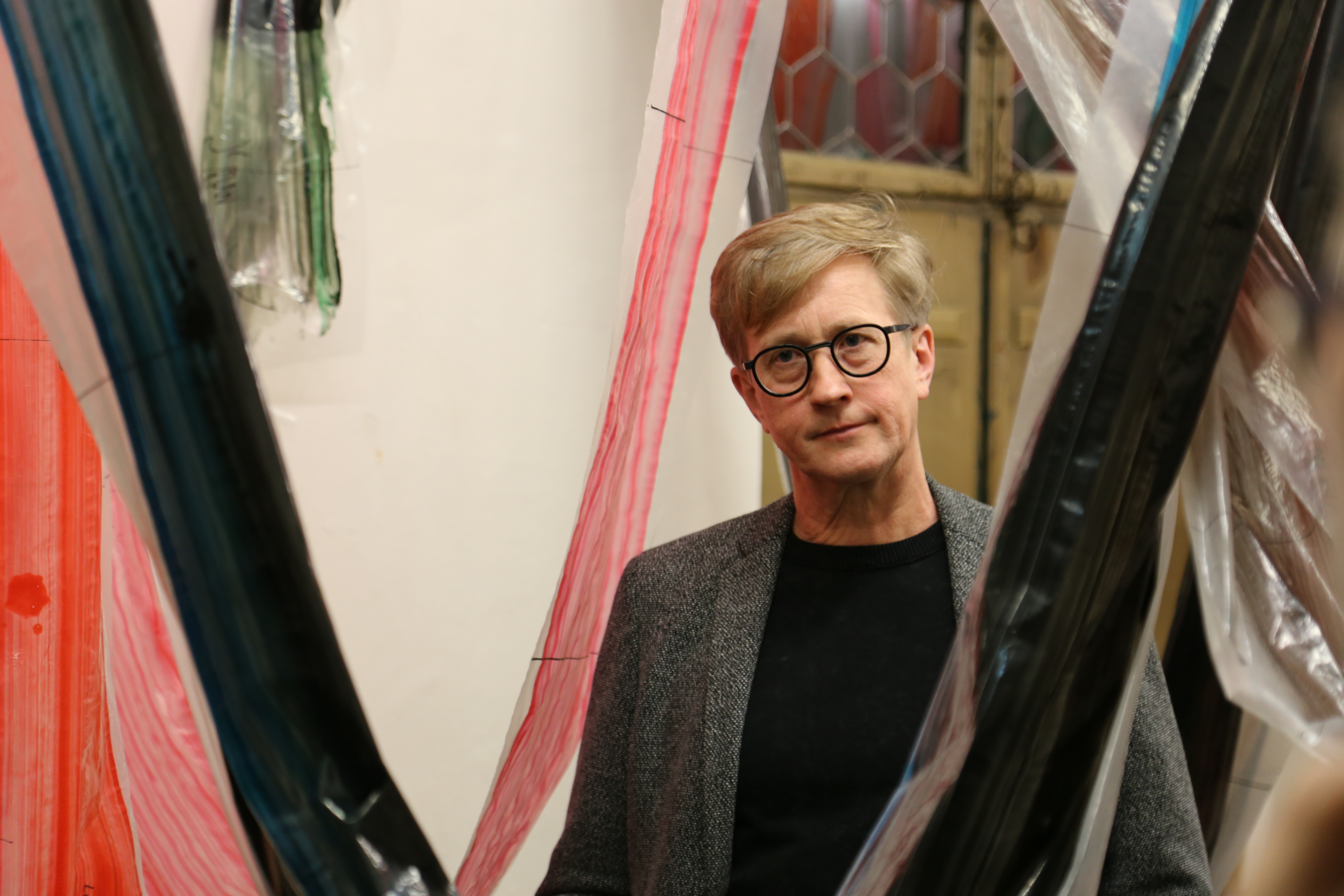 Ich kenne Joseph Marsteurer seit etwa 15 Jahren. In seiner Personale 2007 legte er gleich über drei Ausstellungsräume hinweg ein großes Bild, das sich in den Raum schob und wo man Teil dieser Bildbehauptung war. 15 Jahre lang blieb sein Œuvre mehr oder weniger gleich, archivierte Striche eben, die mal so, mal so auf Plexiglasbildern wandern oder eine Rauminstallation in Ausstellungen erfahren. Was ein derartig „abstraktes“ Bild darstellen könnte? Allein die Frage: Fehlanzeige. Joseph Marsteurer ist nicht nur ausgebildeter Künstler, er studierte auch Violine mit Abschluss und ebenso Philosophie. Und steht täglich ab halb 9 im Atelier, streng getrennt von Netz und Computer – die Archivierungsarbeiten in Tabelle und Bildarchiv kommen erst am Nachmittag dran. Joseph Marsteurer ist also kein abgelenkter Künstler. Im Gegenteil.