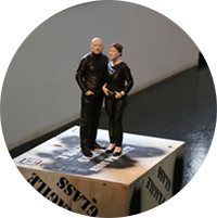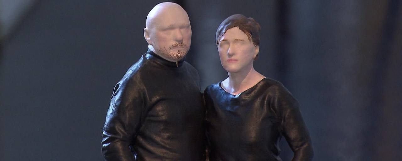 The walking of the two young “spirit bodies” in the anteroom could also be read metaphorically as a “course of life”, which, once read with the mode of remembrance, is also clamped between the beginning and the end, between birth and death. Life takes place between these poles, and sometimes it assumes a destabilizing pace. The viewers were drawn into a carousel by NINA Kovacheva; The opposite of the amusement park made of masks and faces began to turn, the journey was broken by brief interruptions of an ECG curve that appeared over and over again. The world began to turn so fast that it made your heart stop. And in the end, the life carousel revealed that the curve no longer oscillated. That was the end. The eternally recurring waiting for someone became in the end waiting for something indefinite ("Waiting for Someone or Something")—that is death.