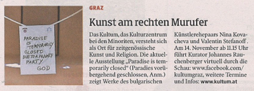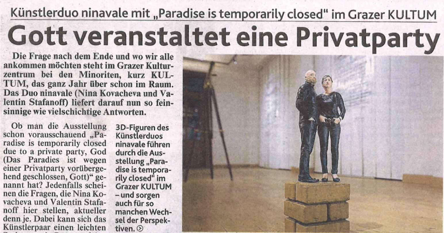 And yet: at the end of the opening, the artist NINA Kovacheva repeated her request: “Enjoy this life!” “Paradise is in the little things. In little things every day and especially in a simple life. Of course, we also look at ourselves ironically. Us and our human existence. Because if it gets too dramatic, it is no longer interesting.”[5]