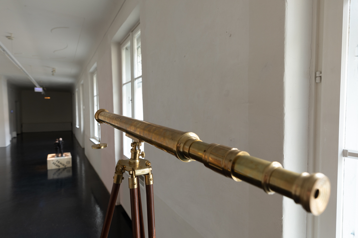 Precisely this "enjoyment"—does this word imply longing? pleasure? The art of finding delight in life?—was the theme of the second exhibition wing. Before this word was discovered as small brass lettering on the wall, visitors were confronted with a large telescope. In the middle of the corridor, the artist couple stood on the transport box as a small 3D printout. Which meant something like: Ninavale took the viewer into the star gazing. The part of this exhibition was titled “The temptations of ninavale”. So the temptations of both. Temptations not of the snake from Genesis 3, but rather the temptations of joie de vivre and enjoying life. An invitation to temptation for everyone who is part of this exhibition.