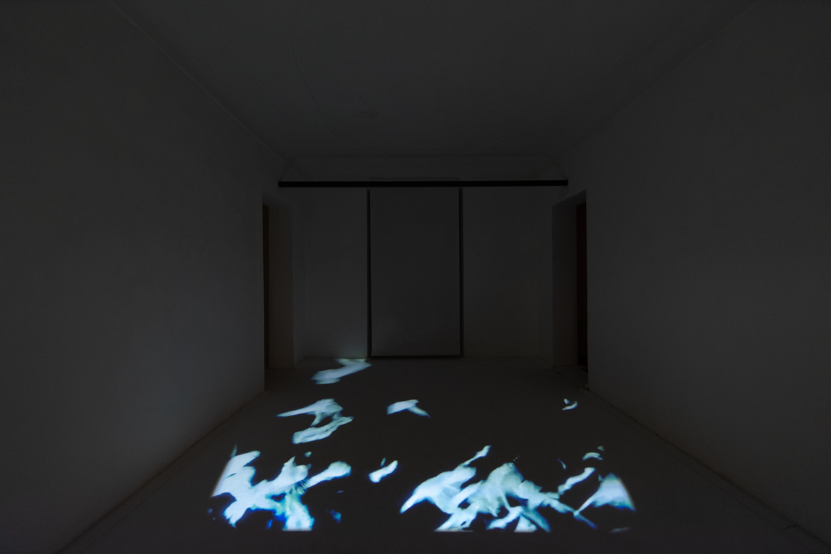 ninavale: Paradise is temporarily closed, 2020, Rauminstallation: Blick auf das VIdeo mit fliegenden Vögeln