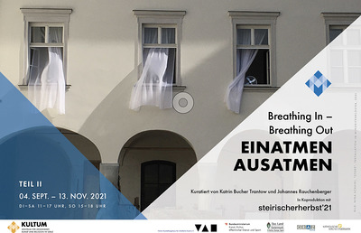 Die für viele so beschwerliche, mit zahlreichen Ängsten umwobene und die Gesellschaft so spaltende Corona-Zeit einerseits und die umfassende und in vielerlei Hinsicht für die konkreten NutzerInnen vor Ort auch sehr aufreibende Baustelle wurde mit einem großen Jahresschwerpunkt mit dem Thema ATEM künstlerisch bearbeitet. Es begann mit Uraufführungen in Neuer Musik und Literatur in einer Pfingstvigil in der Grazer Herz-Jesu-Kirche und wurde wenige Tage später mit der großen Gruppenausstellung EINATMEN – AUSATMEN, die mitten in der Baustelle eröffnet wurde, fortgeführt: Kuratiert wurde diese von Gastkuratorin Katrin Bucher Trantow (Chefkuratorin Kunsthaus Graz) und KULTUM-Kurator Johannes Rauchenberger. Teilnehmende KünstlerInnen waren: Marina Abramovic/Ulay, Michael Endlicher, VALIE EXPORT, Heribert Friedl, Julie Hayward, Anna Jermolaewa, Agnieszka Kalinowska, Isabella Kohlhuber, Maria Lassnig, Christiane Peschek, Ferdinand Penker, Werner Reiterer, Michael Triegel, Liesl Raff, Nina Schuiki, Markus Wilfling, Daniel Amin Zaman. In zahlreichen Führungen wurde diese Ausstellung vermittelt, sie war ein großer, auch medialer Erfolg.
