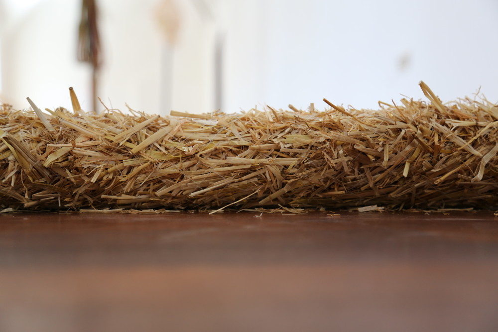 Die Schwellen zum Franziskussaal bestehen aus einer Girlande aus Stroh. Geister entweichen sonst. Es ist ein Ort der Ruhe und des Aufatmens, den Liesl Raff (08) hier gebaut hat. Oder doch nicht? Das „Einlassen“ ist ganz eng verbunden mit der „Fragilität der Osmose“.