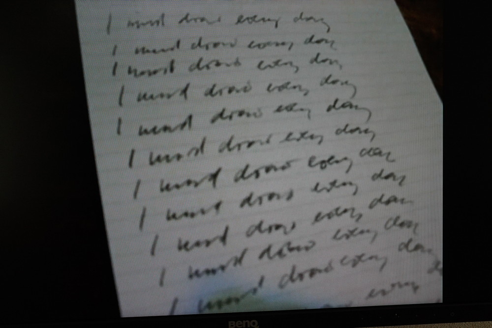 Nicht weit davon finden wir die konzeptuelle Arbeit Dimensional sketch for a possible move. Eine nüchtern wirkende Hörstation, die begleitet von der sanften Stimme der Künstlerin, den Raum in Relation zum eigenen Sein Körper werden lässt. Der Raum wird darin mit den für die Durchquerung notwendigen Schritten vermessen. Körperlänge und eigene Atmung werden zum Maß seiner Länge, Breite, Höhe und Volumen. Sachlich wird beschrieben, wie das Bewältigen der im Raum befindlichen Stufen mehr Luft benötigen wird. Wie sich das Volumen des Einatmens und Ausatmens und seiner Verdrängung zueinander verhält. Und wie das Durchschreiten des Ganges im Vergleich zu möglichem Laufen eine notwendige Steigerung des Luftvolumens nach sich zieht. Und das alles wird als vitruvsches Bild der maximalen Verbundenheit zwischen Körper und Raum, zwischen Mensch und Architektur, berechnet. Ebenso intim und poetisch wie geradezu zwanghaft objektiviert und maximal distanziert.