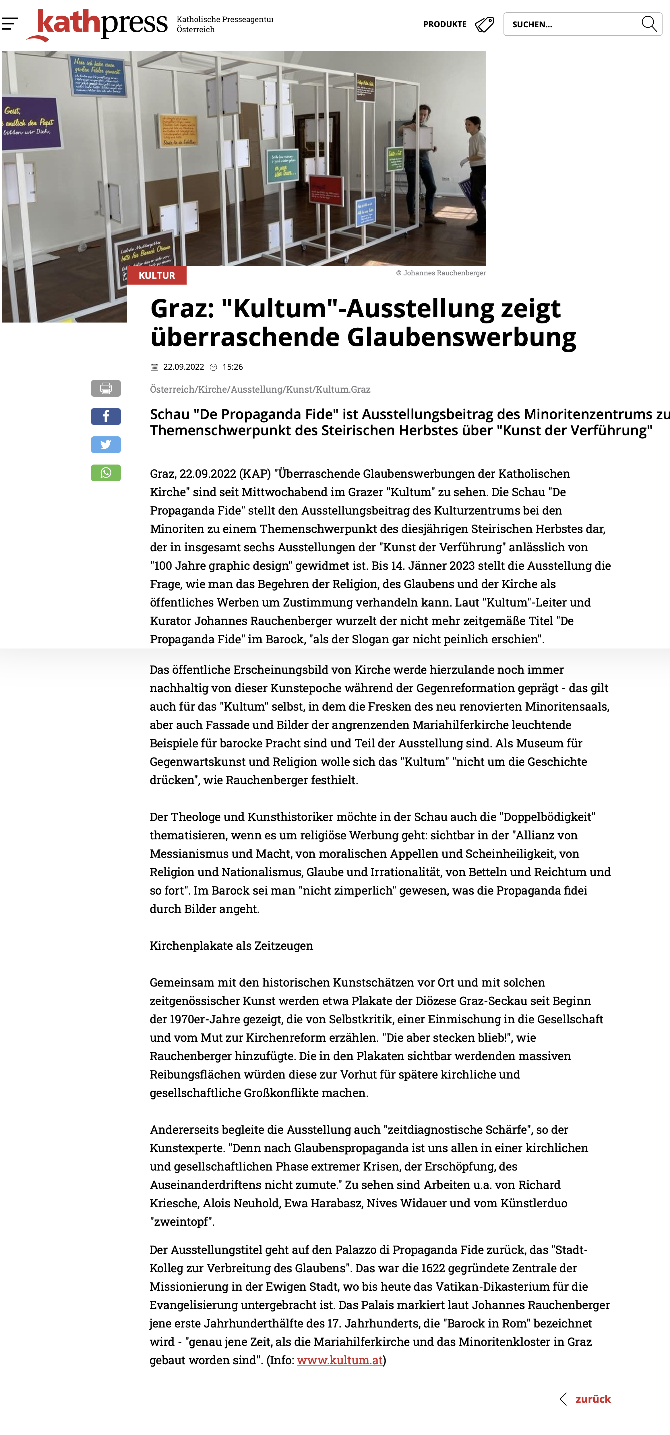 KULTUM Graz zeigt überraschende Glaubenswerbungen, kathpress, 22.9.2022