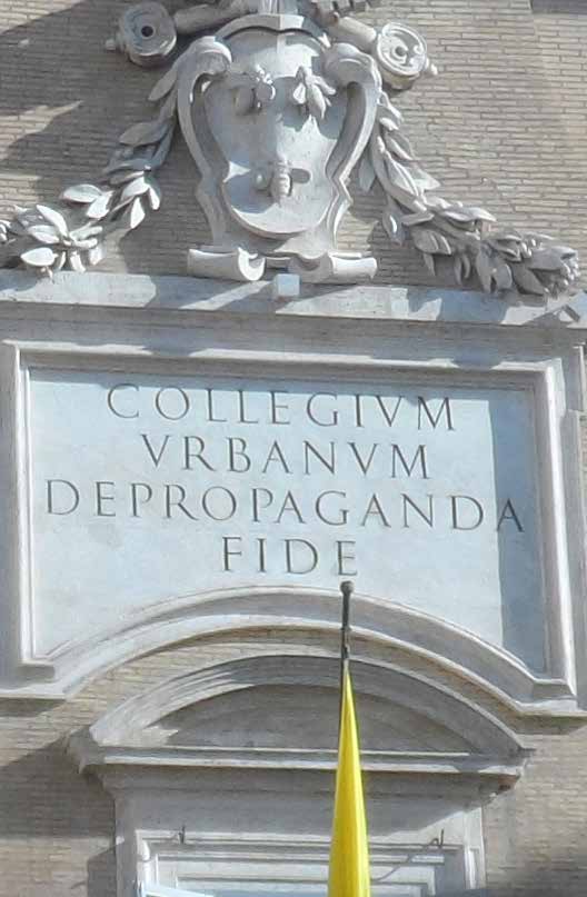 Nur wenige Jahre, nachdem das Grazer Minoritenkloster mit der Mariahilferkirche fertig gebaut worden war, setzte der Barockarchitekt Gianlorenzo Bernini in Rom 1644 einen Schriftzug auf die Fassade des gleichnamigen Palazzos in unmittelbarer Nähe zur Spanischen Treppe: Er lautete: „COLLEGIUM URBANUM DE PROPAGANDA FIDE“. Also das „Stadtkolleg zur Verbreitung des Glaubens“. In ihm befindet sich seit 1622 die damals von den Jesuiten geleitete „Kongregation zur Verbreitung des Glaubens“. Auch wenn sie nun „Kongregation zur Evangelisierung der Völker“ heißt, der ursprüngliche Schriftzug mit dem Propaganda-Wort ist geblieben. Mit „Stadt“ ist nur die eine Stadt gemeint: die „ewige“. Doch ewig ist nichts. Diese Erfahrung macht derzeit gerade und vor allem auch die Katholische Kirche. Bild: „COLLEGIUM URBANUM DE PROPAGANDA FIDE“ |