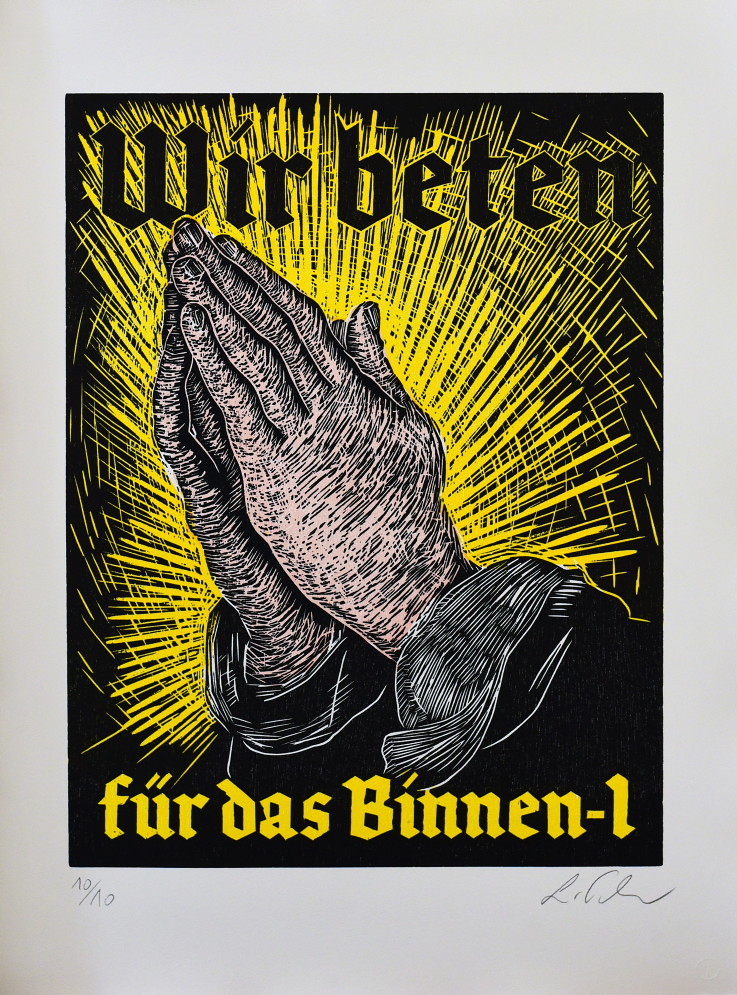 Bilder – Mariahilf! – helfen. Können auch Plakate helfen? In der jüngeren Plakatgeschichte kirchlicher Glaubensunterweisung hat man dies jedenfalls geglaubt. In den 1980er und 1990er Jahren wurden kirchliche Plakate in Österreich von den so genannten „Spruchpakaten“ („Glaubensinformation der Erzdiözese Wien“) geprägt, die private Häuser, Schaukästen, Arztpraxen oder Wirtshausstuben zierten und so zum halböffentlichen Erscheinungsbild kirchlicher Zuspruchs- und Trostrhetorik wurden. Vereinzelt findet man sie in Schaukästen noch immer. Die erfolgreichen Sprüche – Appelle zu einem christlichen Handeln, waren für das Künstlerpaar zweintopf (Eva Pichler und Gerhard Pichler) der Anlass, sich mit religiösen Botschaften künstlerisch auseinanderzusetzen. Sie setzten aber nicht die Appelle erneut ins Wort, sondern vielmehr die Bitten, die, in öffentlichen Bittbüchern niedergeschrieben, an die Mutter Gottes der Wallfahrtskirche Mariatrost bei Graz herangetragen werden. Die Bitten auf diesen Plakaten wurden sprachlich nicht verändert.