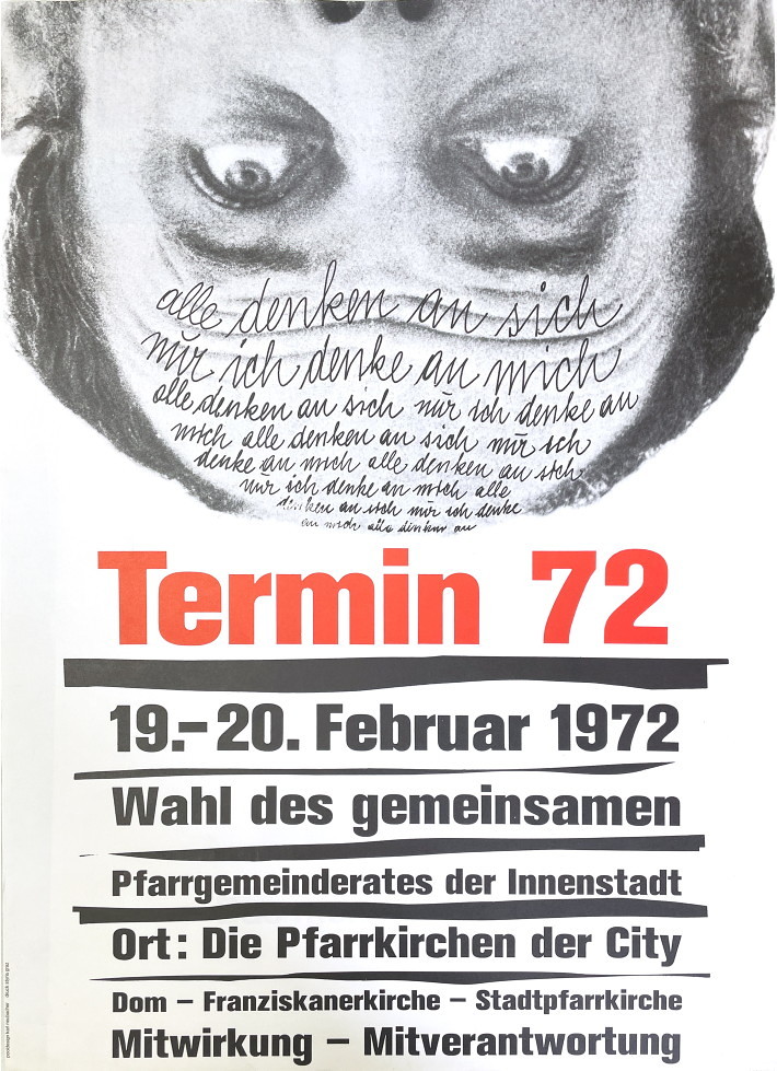 Karl Neubacher: „Alle denken nur an sich ...“ Aufruf zur Pfarrgemeinderatswahl, 1972. Foto: Hans-Georg Tropper.