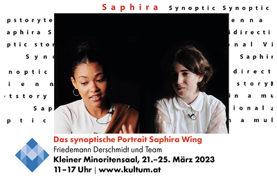 Zur Diagonale '23 zeigte das KULTUM die experimentelle Videoinstallation "Saphira" von Friedemann Derschmidt und Team, die einen kondensierten Einblick in die kunstbasierte Methode des „synoptischen Portraits“ des Künstlers bieten sollte. Es war eines von fünf Portraits, die ab Oktober 2023 im Haus der Geschichte Österreichs in Wien zu sehen war. Konzepte wie „Multidirektionales Erinnern“ (Michael Rothberg), „Postmemory“ (Marianne Hirsch), „Empathic Listeners“ (Aleida Assmann) stehen dabei Pate.