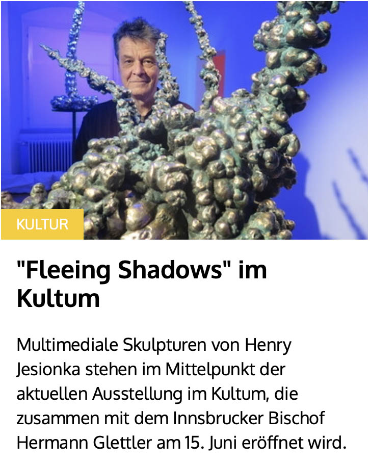 Für Jesionka ist „Trinity“, diese unvorstellbare Ungeheuerlichkeit, der Schlüssel, sich vielfach der christlichen Ikonografie in dieser geballten Erzählung zu bedienen. „Quis Deus?“ „Wer ist (wie) Gott?“ Die Frage, die man dem Erzengel Michael als Namen gegeben hat, dekliniert Henry Jesionka an den unfassbaren Erkenntnisfähigkeiten, die gleichzeitig die Möglichkeit der potenziellen Totalauslöschung im Schatten haben, durch. Die „letzten Dinge“ kullern um die Nanosekunden von Fotos einer Kernspaltung, die hier wie Reliquien um den Ahnherrn dieser Kernspaltung im ersten Raum kreisen und schließlich der Auswirkung dieser Energie, die den rauchenden Physiker als schwarzen Schatten in dieser Ausstellung im dritten Raum an die Wand pressen. Sie kullern auch um zwei große Skulpturen im zweiten Raum – jener aus poliertem Aluminiumguss, die die nach der 73,191. Sekunde nach dem Start explodierte Challenger-Trägerrakete aus dem Jahre 1986 zeigt und die weitere – nur etwa 3 Sekunden später – als „T= +76.437“ bezeichnete, die nun ein patinierter und polierter Bronzeguss ist. Die Formen haben sich – freilich als zweidimensionales Bild – als mediales Bild dem kollektiven Gedächtnis eingebrannt. Aus ihm hat der Künstler zwei 3D-Modelle gebaut und die beiden Skulpturen aufwändig gegossen. Die „letzten Dinge“ kullern aber auch um die Erkenntnisse um „schwarze Löcher“ und um deren Wissenstitan Stephen Hawking, jener Ikone von menschlicher Intelligenz, die aufgrund seiner Krankheit auch zur Ikone der Kommunikation mit künstlerischer Intelligenz geworden ist: Einen Gott hat Hawking, der vielleicht so viel sah (bzw. berechnete) von den unendlichen Dimensionen des Kosmos wie kein zweiter, dennoch bestritten. Damit ist auch die nächste Mega-Bedrohung angedeutet, vor der ausgerechnet Hawking gewarnt hat (und die Wenzel Mraček in seinem Text zu dieser Ausstellung ausgegraben hat): „Wenn wir nicht lernen, uns auf mögliche Gefahren vorzubereiten und sie zu vermeiden, könnte KI das schlimmste Ereignis in der Geschichte unserer Zivilisation sein.“ Der 1942 geborene und 2018 verstorbene Hawking hat schon 1975 nachgewiesen, dass „Black Holes“, „Schwarze Löcher“, die alles verschlingen, sich selbst aber nicht aufsaugen, sondern nach außen hin strahlen. Anders gesagt: Das berechnete „Nichts“, das totale Vakuum, kann nicht das absolute Nichts sein. Auch physikalisch nicht. Körperlich nachspürbar ist diese „schwarze Strahlung“, wie gesagt, im letzten Raum. Doch das ist eine andere, als jene, die Hawking gemeint hat. Sie ist die aufgrund menschlicher Intelligenz möglich gemachte Kernspaltung, die so viel Energie freisetzt, wie es die Sonne unentwegt vormacht.