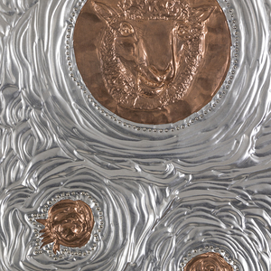 Acryl auf Leinwand, Aluminium, Kupfer, Kupferoxid, Blei, bearbeiteter Stahl und Oxid, Magnete, Eisenspäne, Nägel, Glasbausteine, Glas