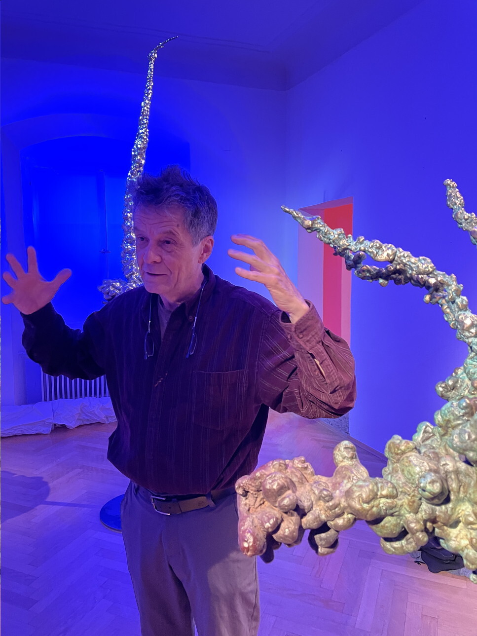 Henry Jesionka vor seinen Ausstellungsobjekten von "FLEEING SHADOWS"Foto: J. Rauchenberger
