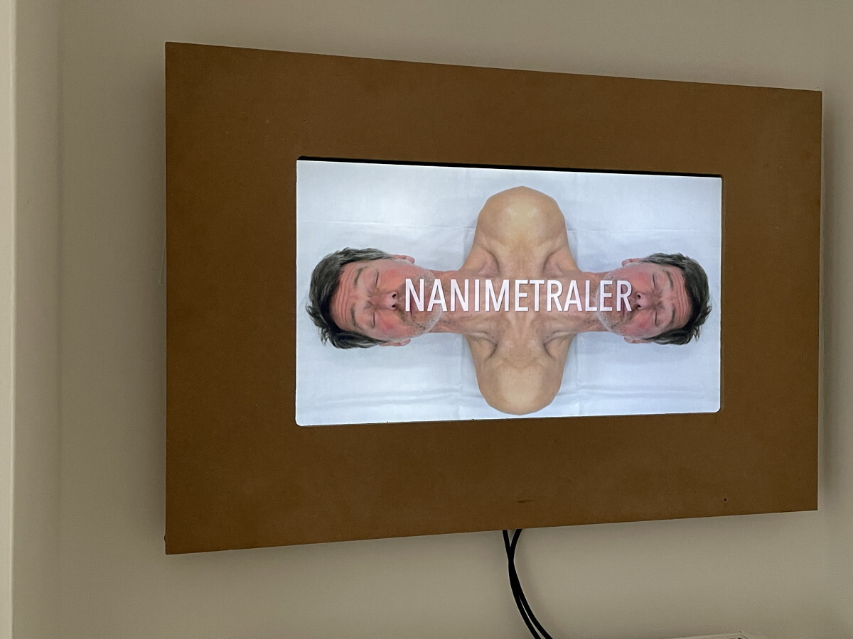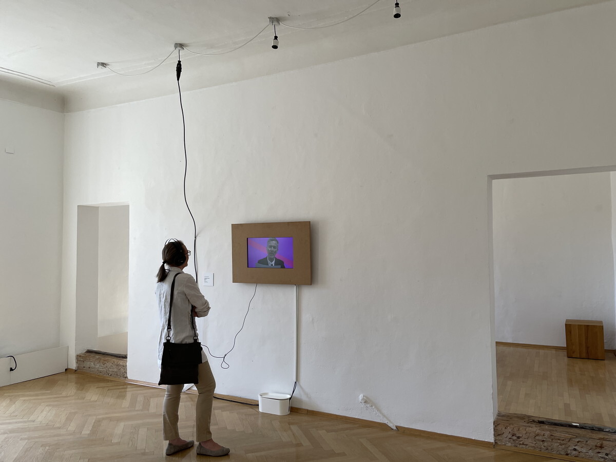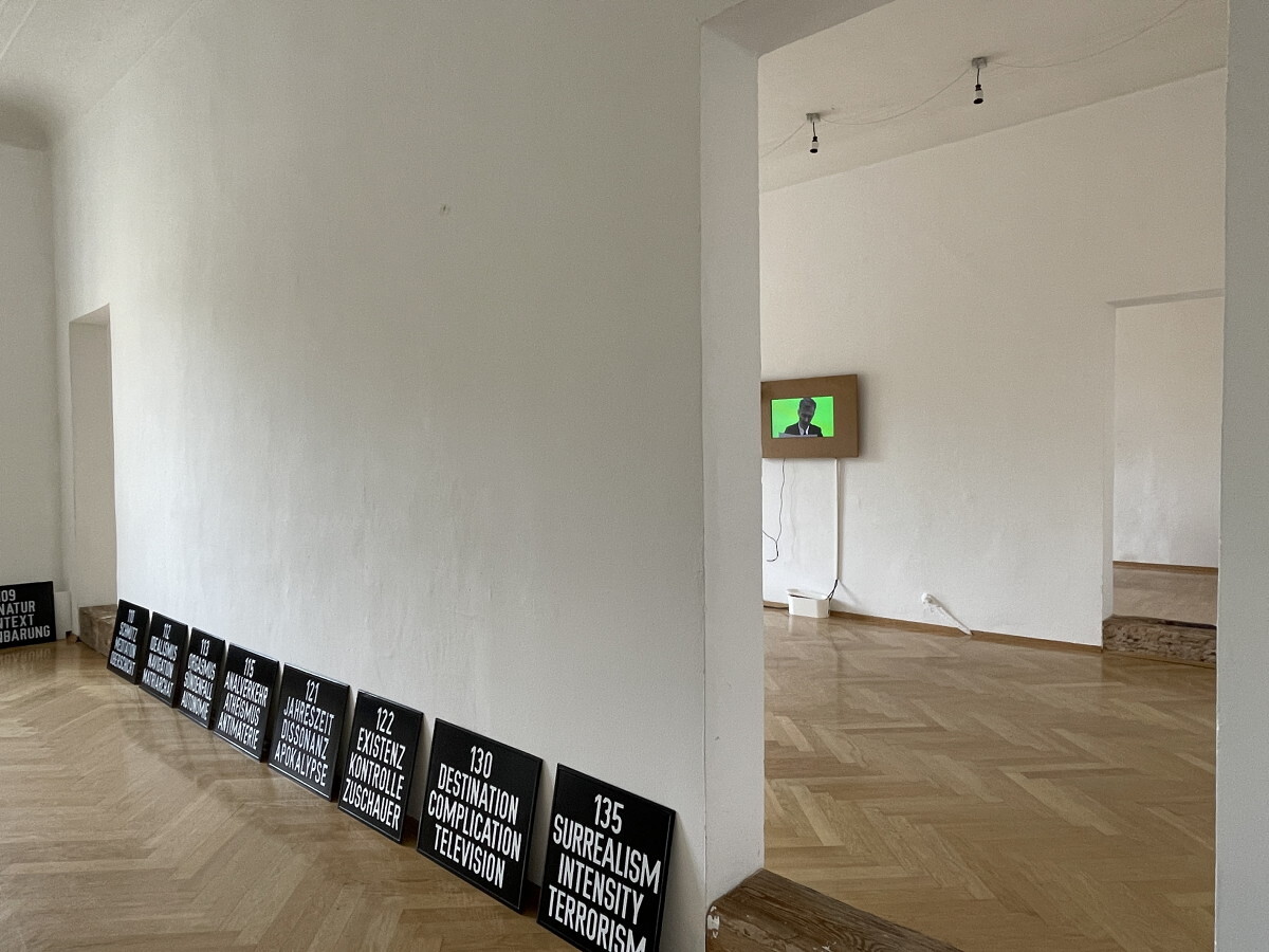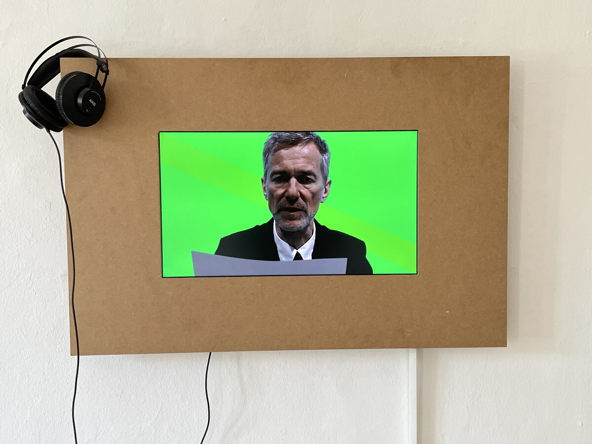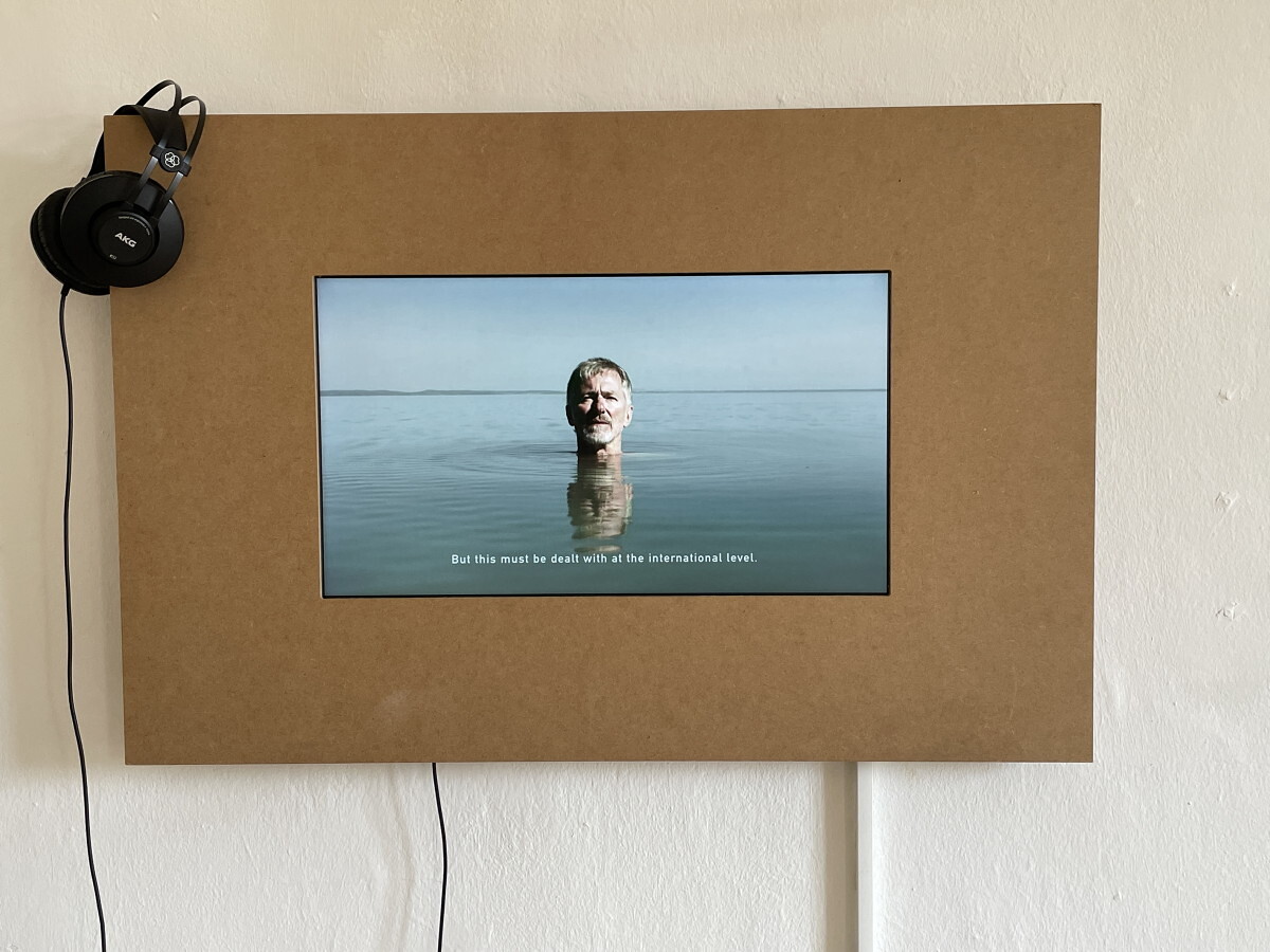 Zwei davon werden in der Mittelzelle der Ausstellungszellen im 2. Stock präsentiert. „Aber aber aber“ zeigt den Künstler, fast versunken im Neusiedlersee, wie er stellvertretend für seine Betrachterinnen und Betrachter alle möglichen Argumente vorbringt, das Leben angesichts des drohenden Klimakollapses doch nicht zu ändern… Und bei „Ich möchte Folgendes klarstellen“ entschuldigt er sich als Nachrichtensprecher (in einer synchronisierten Frauenstimme) bei allen möglichen Gesellschaftssegmenten und distanziert sich von ihnen – political correctness sozusagen auf die Spitze getrieben, die uns jeden Atem nimmt.