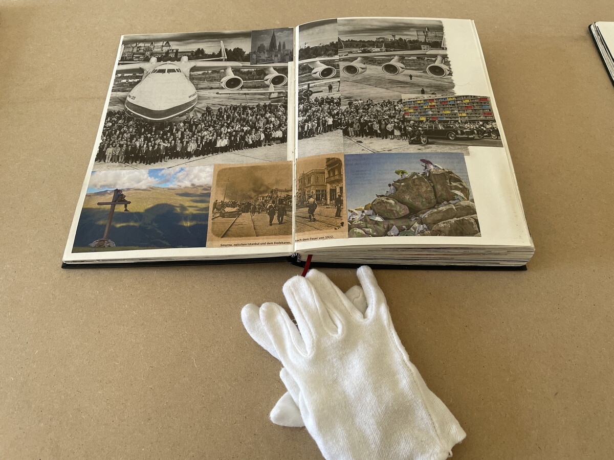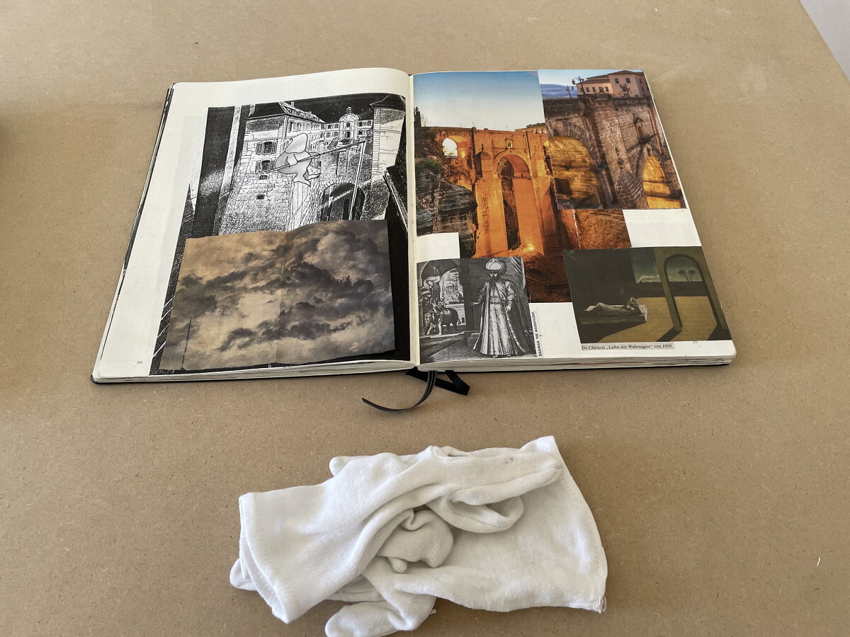 Wie groß die Lust des Künstlers Michael Endlicher am Kombinieren, Zerteilen, Zerstückeln und Neuzusammensetzen ist, zeigt schließlich abschließend ein ganz anderes Medium, das er in dieser Ausstellung in der letzten der drei Ausstellungszellen im 2. Stock das erste Mal öffentlich präsentiert: Klebecollagen von Zeitungs- und Magazinausschnitten, die nicht nur eine erhebliche Schaulust beim Betrachter, der Betrachterin entfachen, sondern auch eine erhebliche Lesezeit des Herstellers voraussetzen: Durch Neuzusammenstellungen hat Michael Endlicher faszinierende Neuerzählungen durch Bilder gebaut, ganz ohne Schrift.