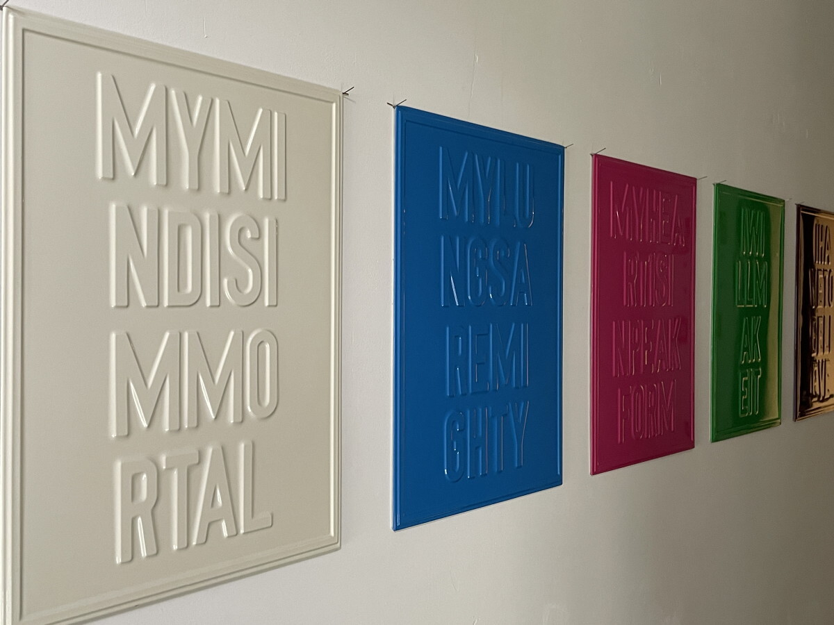 Ob wir weitersehen werden, wie es am Ende ein wenig enttäuschend heißt? Dabei war auf einem der bunten, monochromen Blechen einen Stock tiefer – Michael Endlicher nennt sie „AUTOMAGICS“ – noch „MYMINDISIMMORTAL“ schwer, aber doch zu entziffern: Man könnte dies als ein wenig ironisches Credo lesen.