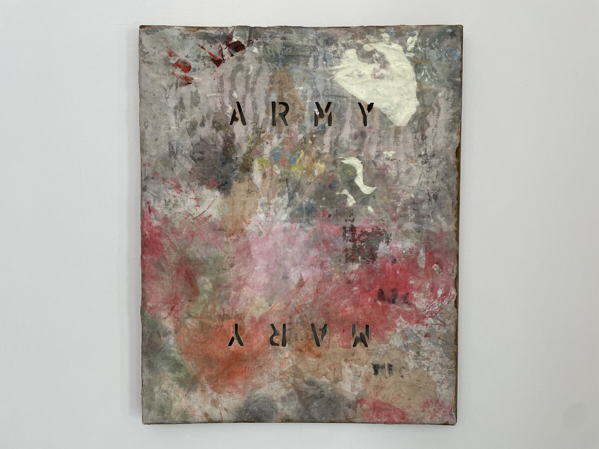 Über einen Ausstellungweg von drei Stockwerken hinweg sind weitere Videos Endlichers in dieser Schau gesetzt, die sich mit gemalten Bildern, geprinteten Lettern, gestanzten Dramenblechen oder gefrästen Buchstaben abwechseln: Eines davon, ganz unscheinbar an der Ecke von „HERZMARY“ angebracht, ist das ebenfalls umzudrehende Bild „MARY“, dessen Buchstaben der Künstler zu „ARMY“ verschoben hat. (Das „Mariahilf-Bild“ galt nicht zuletzt in der Zeit der Türkenkriege auch als Siegesbanner.)