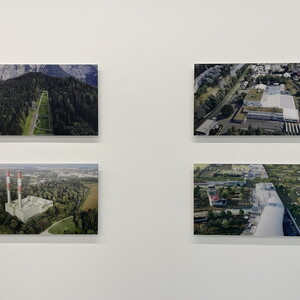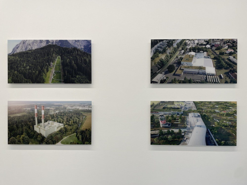 Dabei würde, ja müsste sich gerade am Geist viel entscheiden; geht es doch darum, ein Bild der Zukunft zu entwerfen, auf das hin man leben könnte. Ohne dieses kann doch keine Wahl gewonnen werden, mit der man in der Folge gestalterisch eingreifen kann. „Zukunft“ war doch lange ein Slogan, doch diese erscheint mittlerweile längst als sehr dunkel, besser formuliert: überhitzt. Auf der Gegenseite zum „steirischen Glückauf“ mit seinem schiefen Erdhaus, der schneebedeckten Kuppel auf der B54, den demolierten Österreich-Fahnen und des Abschreibens eines Gesprächs über die Utopie sind sehr visionäre Steiermark-Bilder aufgereiht, sogar versehen mit langen Bildlegenden, die Projekte zeigen, die aus der Perspektive von 2050 eine Rückblende auf die derzeitige Gegenwart machen. Es wird dabei die Frage gestellt, was etwa aus dem Autowerk Magna geworden ist, was auch aus dem Kohlekraftwerk in Mellach, was aus der Flugschanze am Kulm, wenn es längst keinen Schnee mehr gibt? Ja, die Bilder kümmern sich auch um den Grazer Flughafen, wenn man längst nicht mehr fliegen wird? Oliver Resslers Bilder „Reclaiming Abundance“ setzen darauf, den verlorenen Wohlstand wieder zurückzugewinnen:
