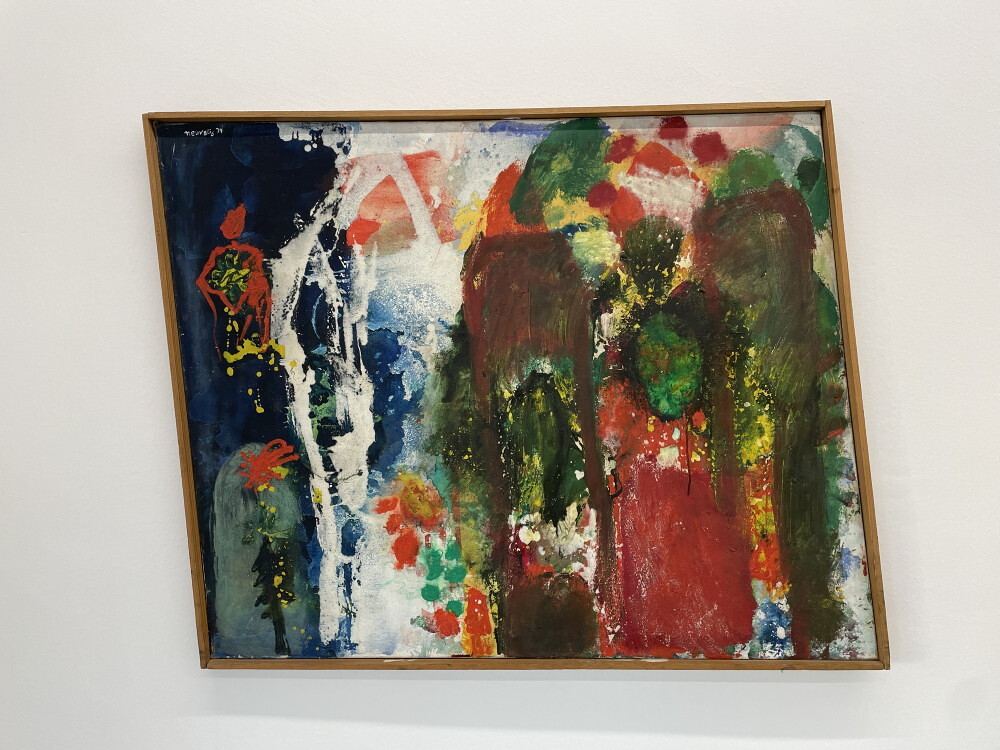 Gleich das erste Bild links vom Eingang ist ein derart „schiefes Erd-Haus aus der Oststeiermark“, niemand, auch nicht die Kundigen, würden den Künstler dieses Bildes wohl erraten, weil er nur wenige Jahre später schon seine unverkennbare Bildsprache des Kleinen und Krautigen entwickelt hat – bis heute. Nicht nur das farbenfrohe rote Haus ist auf diesem Bild schief, auch das Bild selbst ist schief, es kommt sogar einer Raute gleich.