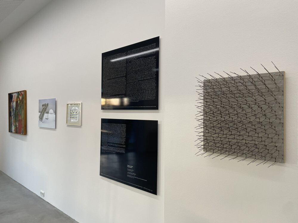 Der langjährige Mastermind von K.U.L.M. ist dafür bekannt, unendlich viel abzuschreiben. Hier ist es ein Gespräch über die Utopie – zwischen Bruno Latour und Peter Weibel, beide in der Quellenlegende nicht nur mit Geburts-, sondern auch mit Todesdatum versehen: Letzteres verleiht den fünf Tafeln, von denen hier zwei ausgestellt sind, einen ziemlichen Gegenwartsbezug.