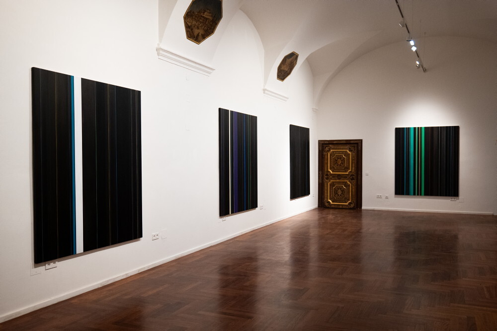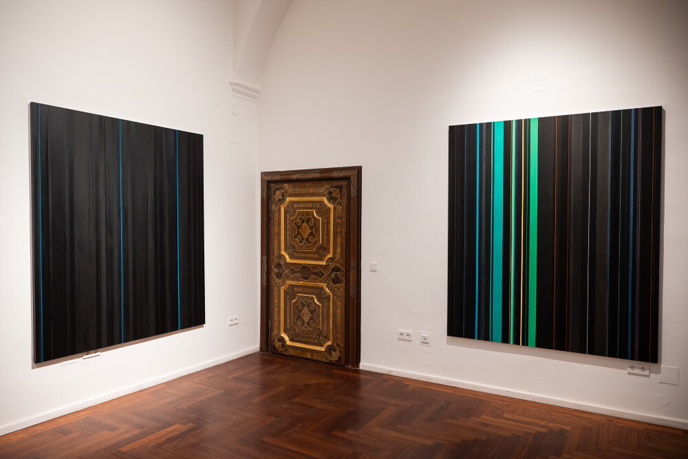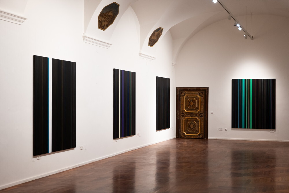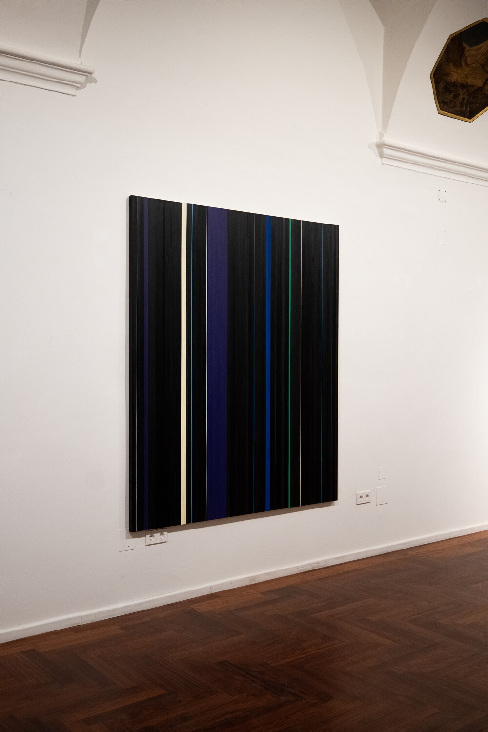 Fragen von Metaphysik sind bei Kopljars Werk ein durchgehendes Motiv über mehr als drei Jahrzehnte, er hat fast alle Varianten der künstlerischen Ausdrucksweise von Performance, Fotografie, Film, Skulptur, (Gedächtnis-)Kunst durchgespielt. Seit drei Jahren hat er sich entschieden, erstmals und nur mehr zu malen. Konsequent vermeidet er dabei jede offene Botschaft. Es sind „Streifenbilder“, die aber bei näherem Hinsehen eine durchaus subjektive Malgeste offenbaren, womit er sich auch von der Auslöschung des Künstler-Ichs distanziert. Nach dem Abschluss seiner „Konstruktionen“ im Jahr 2019 entwirft sich Zlatko Kopljar – in den Lockdown-Phasen der Covid19-Pandemie – als Künstler neu. Er mietet sich erstmals ein Atelier in Zagreb und besinnt sich dem, was er bis 1991 in Venedig auch studiert hat: der Malerei. Seit seinem Studienabschluss ist er nämlich nie mehr als Maler vor die Öffentlichkeit getreten. Seine seit 2021 entstehenden Gemälde sind das erste Mal überhaupt in dieser Ausstellung – in zehn großformatigen Gemälden – zu sehen.