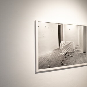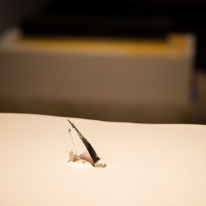Shame (Scham), 1996, Fotodokumentation der Raum-Installation, Zigarettenpapier, Installation mit variablen Abmessungen
