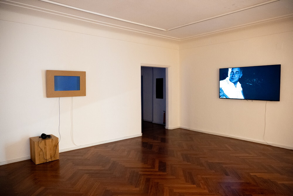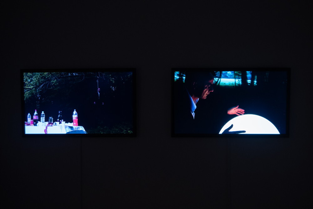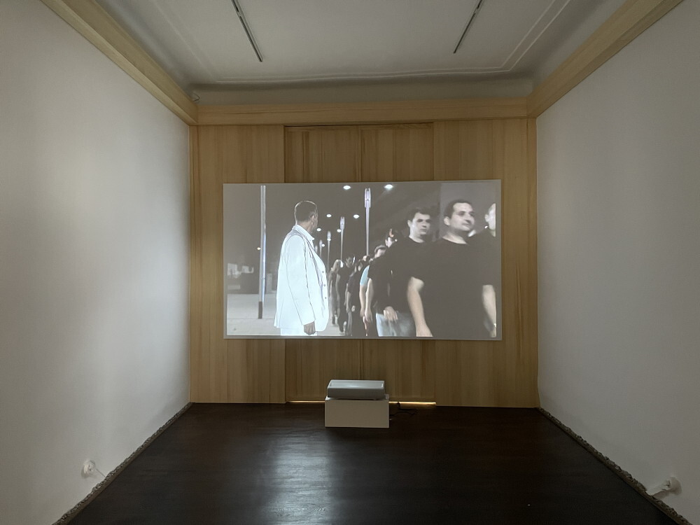 Den ersten Tod erlebt der Künstler im schwarzen Anzug in K12. Das Doppelvideo, im Raum vor dem Cubus zu sehen, ist ein Wendepunkt in der Großerzählung von Kopljars Konstruktionen.